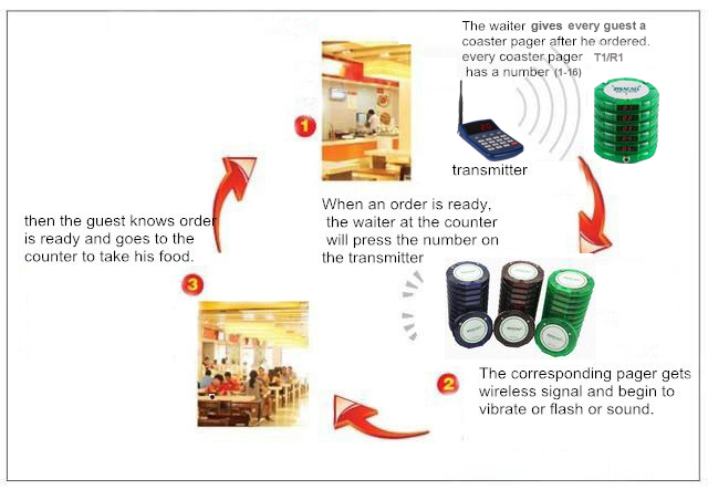 ZISACALL Wireless call queuing systemslet customers do not have to wait at a long row of the team in the restaurant before taking meals, service personnel do not have to shout to take guests on a bar meal. This system is suitable for needs waiting position service establishments, such as: fast Restaurant, food City, cafeteria, service hall, banks, shopping malls and other queuing functions; able to provide customers with better and faster service, saving labor costs, improve meal order, improve efficiency, enhance corporate image and improve operating margins ; effectively guarantee thoughtful and meticulous service.