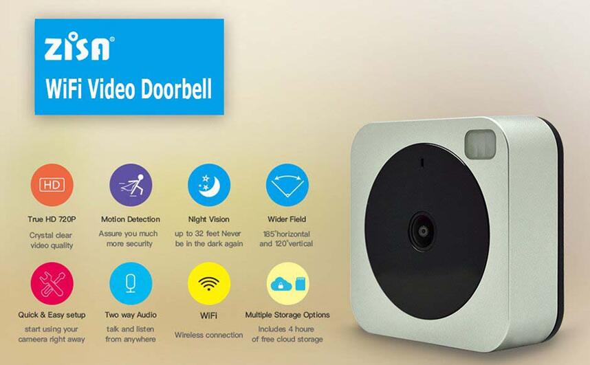 ZISA Cloud Wireless WiFi Video Doorbell, WiFi Camera, Doorbell Camera, Kit. - Outdoor Wired