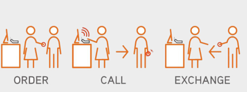 2).The waiter gives each guest a coaster pager, every pager has ID number on it.